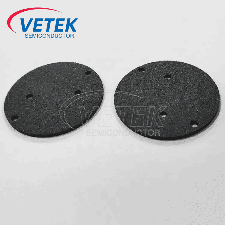 Dalam peralatan uap kimia (CVD), sebagai pelat distribusi gas, pori -pori digunakan untuk secara seragam mengangkut gas reaktif (seperti SIH₄, NH₃) untuk meningkatkan keseragaman deposisi film tipis.